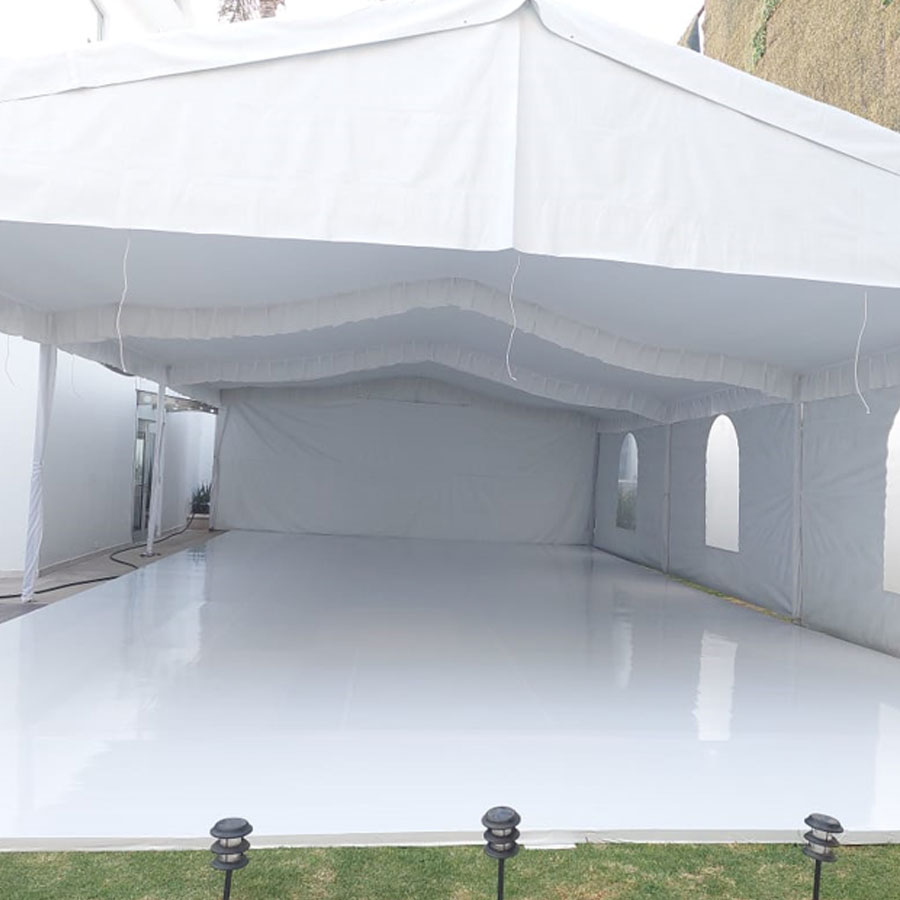 • Flexibilidad de espacio: Las carpas y lonas permiten crear espacios adicionales o ampliar áreas existentes, brindando flexibilidad en el diseño y la distribución de los eventos. Esto es particularmente útil en ocasiones donde el espacio es limitado o cuando se necesitan áreas específicas para diferentes actividades.